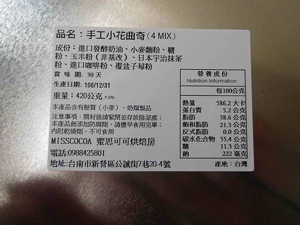 結語 : MISSCOCOA蜜思可可 在口味上不會過於濃烈~算是順口型的手工小花曲奇餅乾